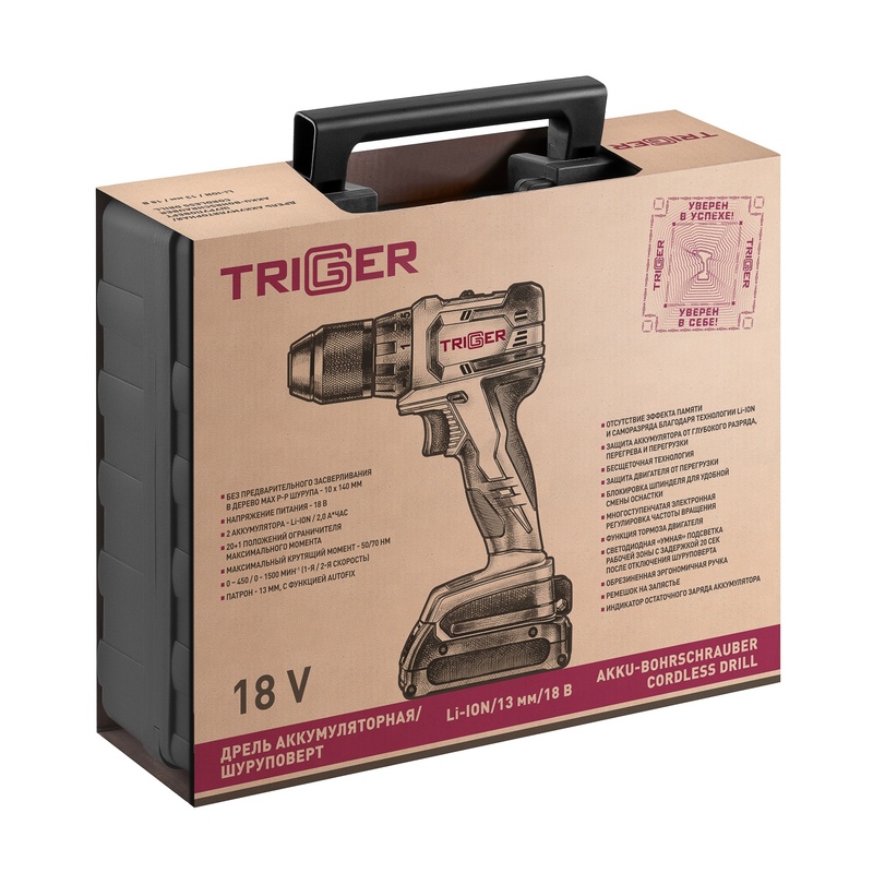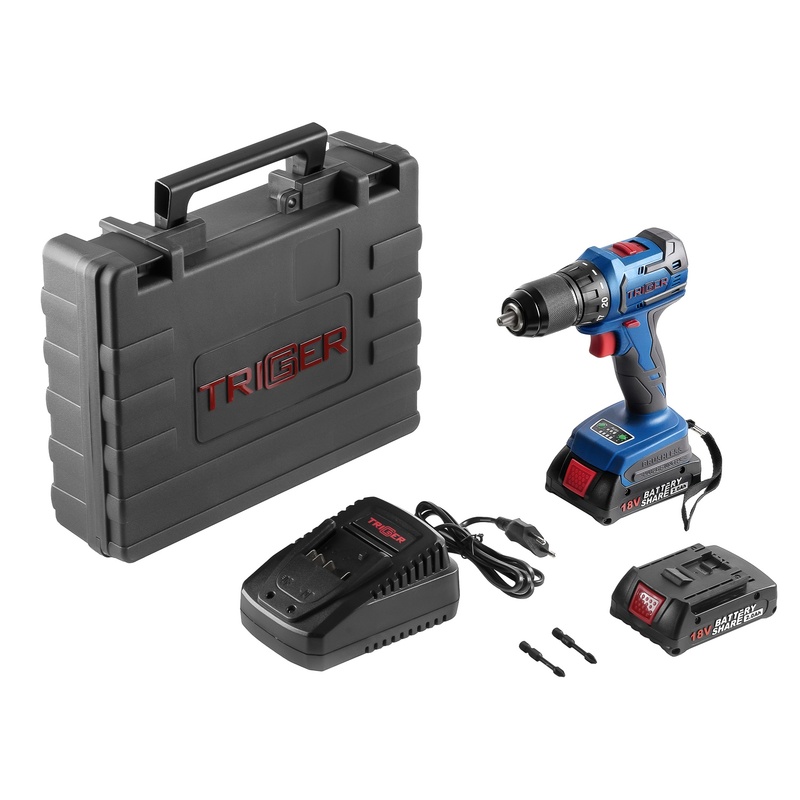 Дрель-шуруповерт Trigger 20111, бесщеточная, 2 аккумулятора Li-ion (2Ач), 18V, 13 мм, 72 Нм, кейс в Красноярске