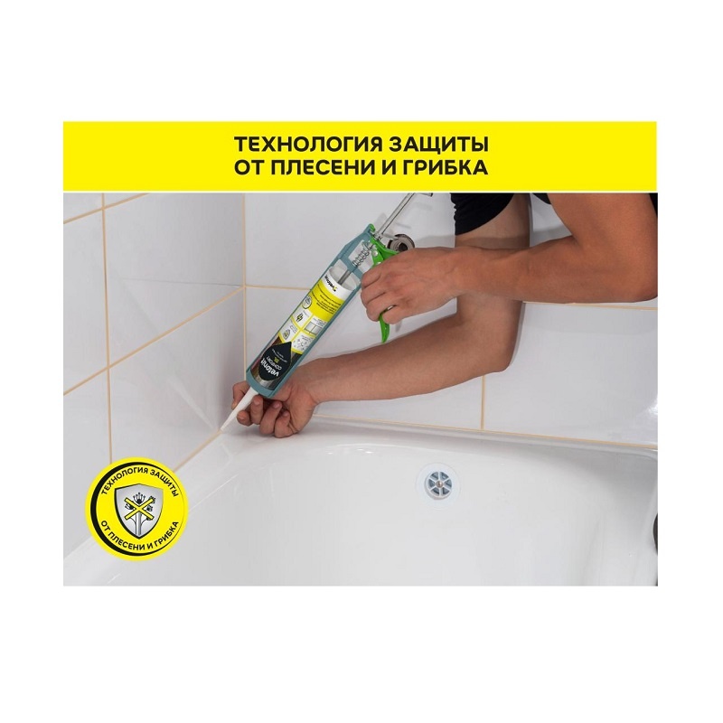 Предназначен для герметизации угловых стыков плиточных облицовок, стыков, примыкающих к санитарно-техническому оборудованию (ванны, раковины, унитазы и др.), а также стыков напольных покрытий (плитка-паркет и др.) в сухих и влажных помещениях: ванных комнатах, душевых, кухнях, туалетах, саунах, банях и т.д. База на основе нейтрального силикона обеспечивает отсутствие запаха у герметика и неограниченную зону его применения. Герметик стойкий к УФ излучению, к моющим средствам, а также защищает от плесени и грибка.