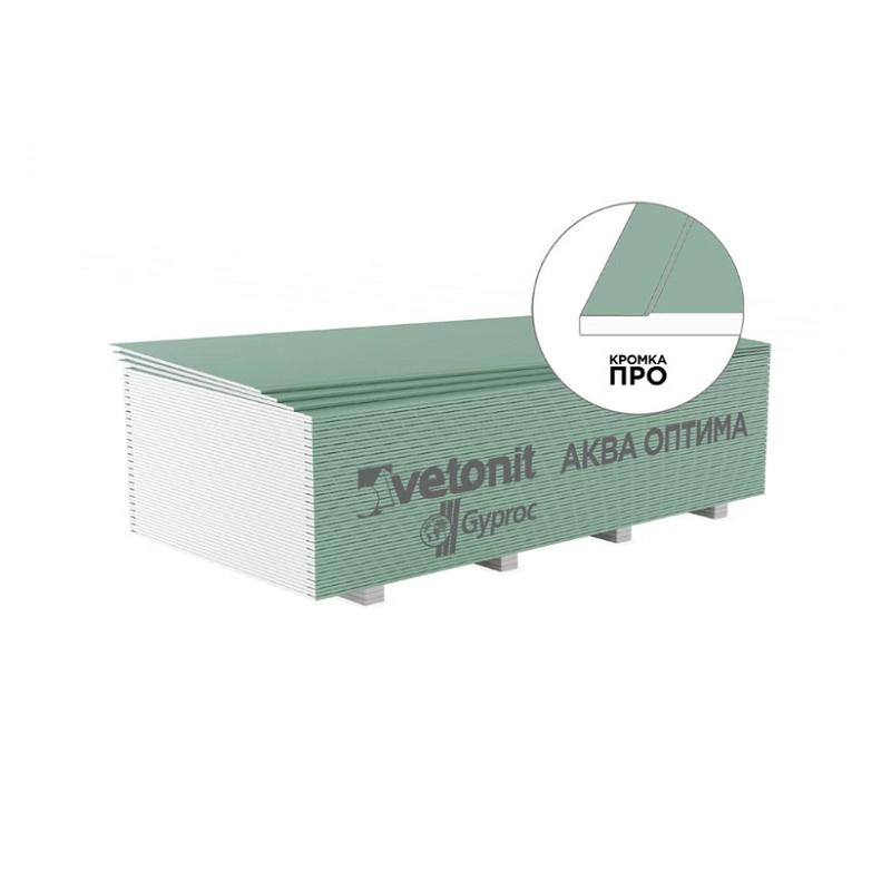 Гипсокартон влагостойкий Vetonit Аква Оптима, 2500х1200х12,5 мм