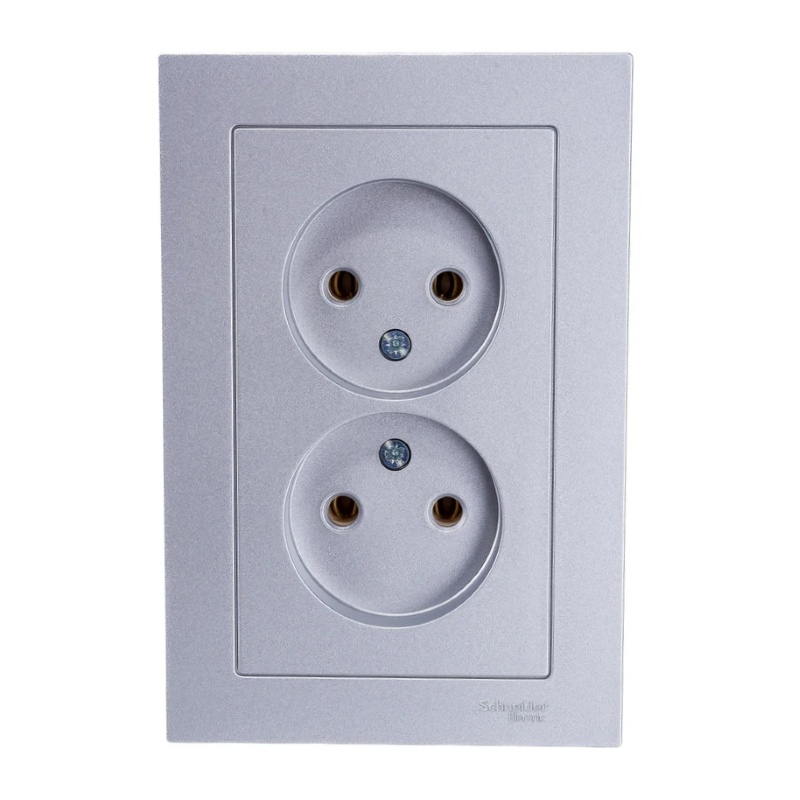 Розетка с/у Atlasdesign ATN000320, 2 гнезда, б/з, алюминий