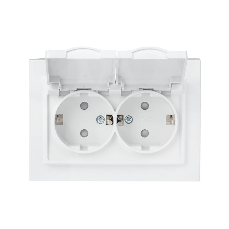 Розетка с/у Минск ERR16-129-200-44, 2 гнезда, с/з, з/ш и крышкой, IP44, белая