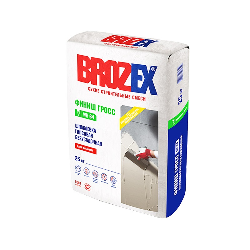 Шпаклевка гипсовая безусадочная Brozex Финиш Гросс WR 64, 25 кг