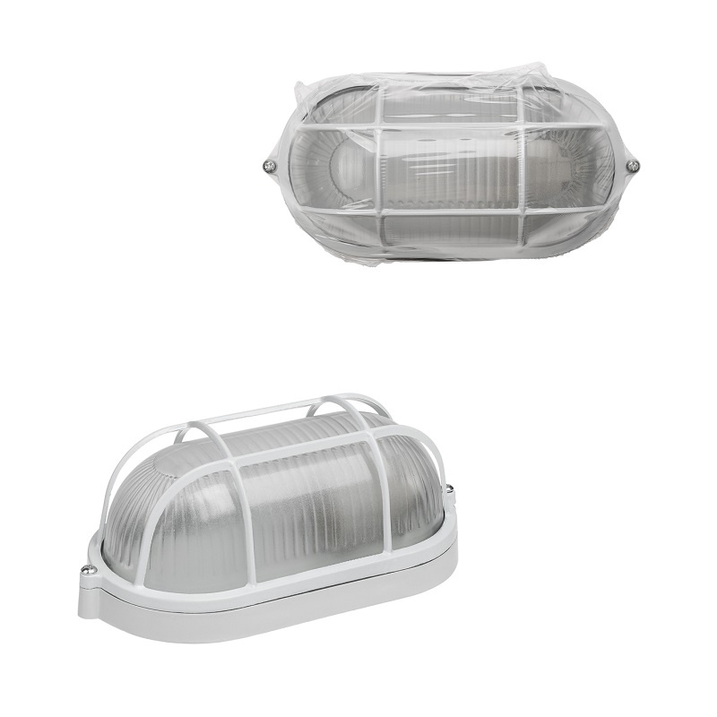 Светильник НПБ под Е27, 60 Вт, овал с решеткой, белый металл+стекло, IP54